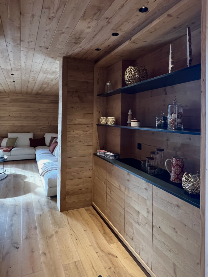 Chaque chalet possède une identité forte. Pour cette raison, nous travaillons toujours en respectant son caractère naturel. Le bois, la pierre et les matières chaleureuses restent au centre de la conception. En parallèle, nous intégrons des touches contemporaines afin d’améliorer la luminosité, l’ergonomie et la circulation entre les pièces. Grâce à cette approche équilibrée, le chalet gagne en confort tout en conservant son authenticité.